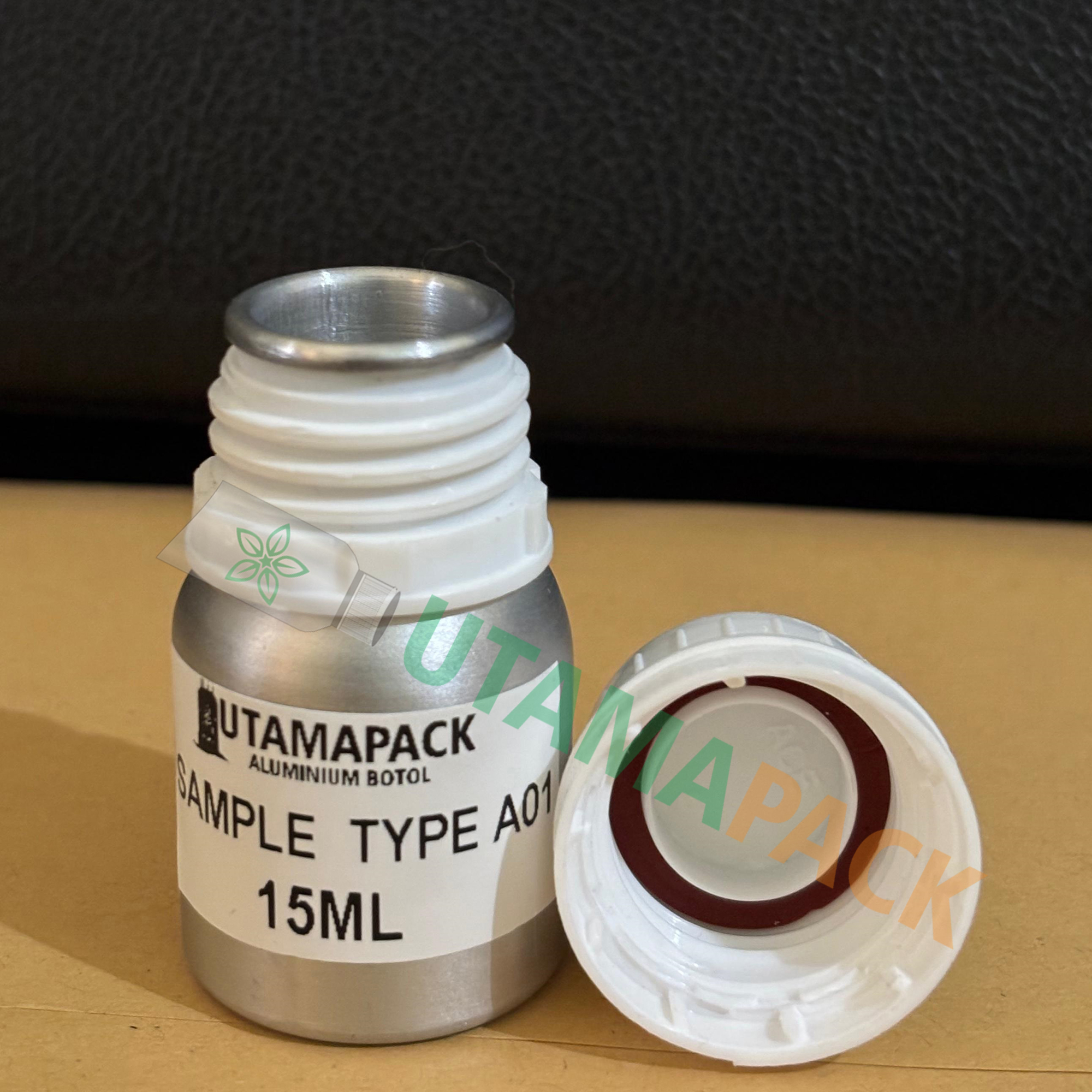BOTOL ALUMINIUM ukuran 15 ml type segel tutup Plastik